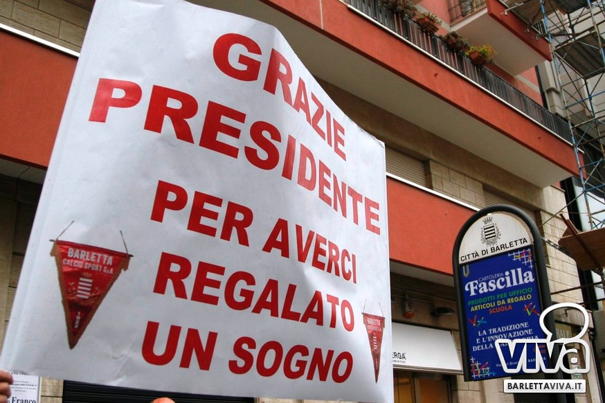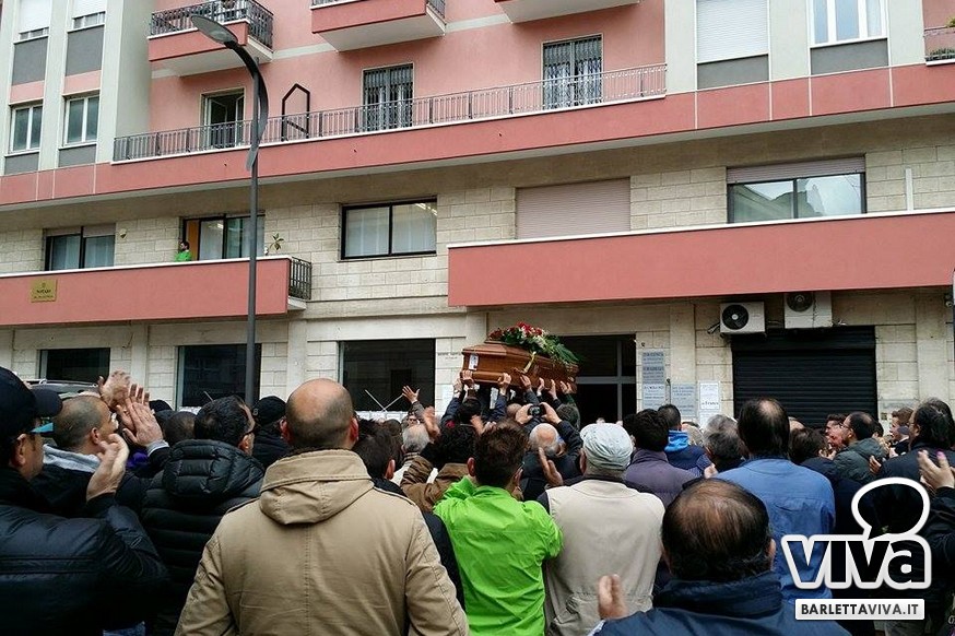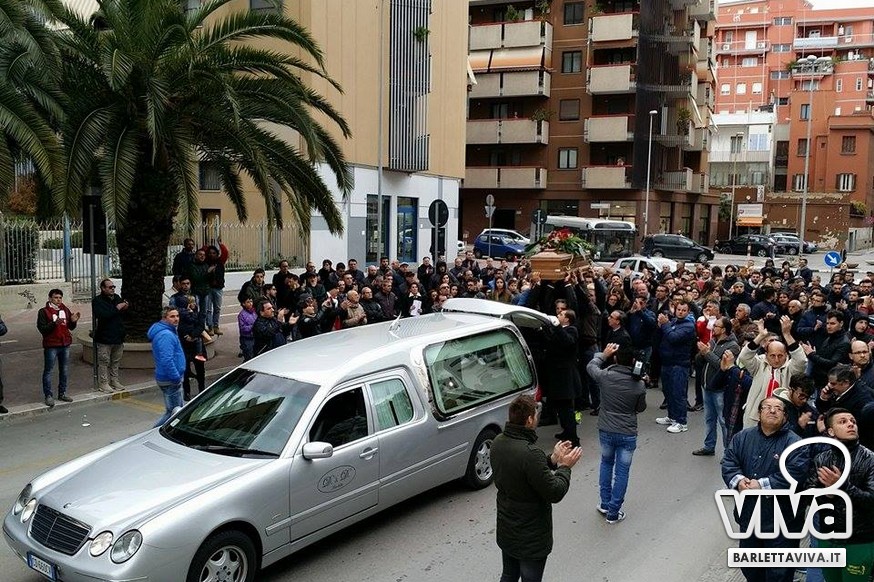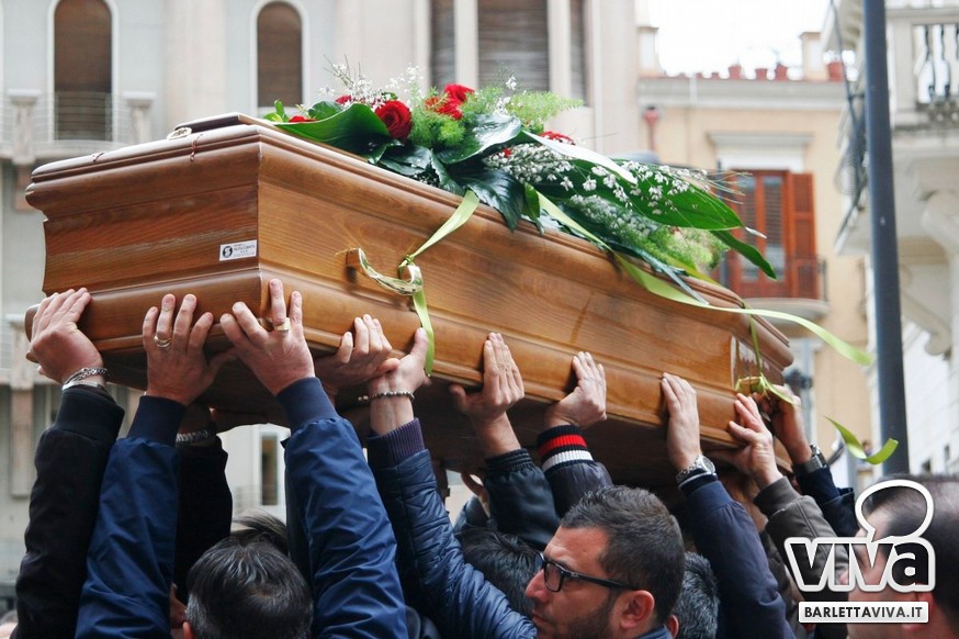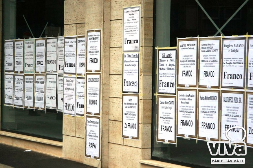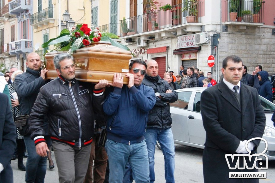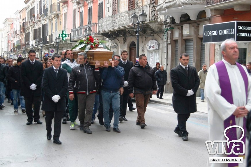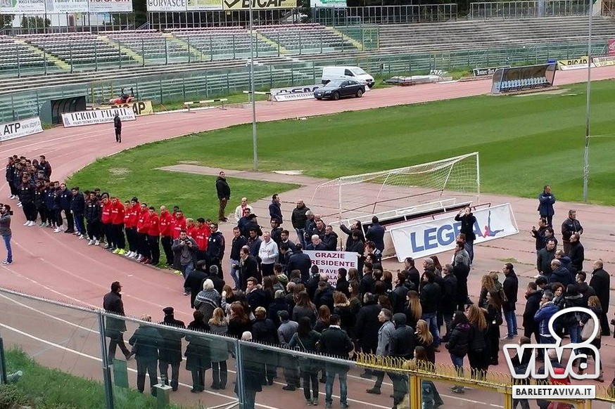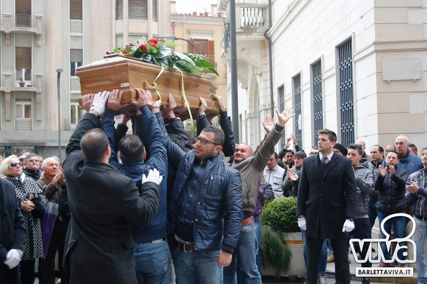 "Franco Di Cosola sempre nei nostri cuori, uno di noi" il coro più gettonato tra i tanti aficionados biancorossi, che hanno voluto ricordare e omaggiare la famiglia e la figura dell'ex presidente: dopo la celebrazione eucaristica di don Leonardo Doronzo, è stato tempo del lungo corteo. Il clima uggioso e la pioggia si sono confusi con le lacrime e nel cielo della Barletta sportiva si è condensata un'aura di silente dolore, che si confondeva con dolci ricordi ogniqualvolta in cui tra la folla accorsa il chiacchiericcio o qualche coro richiamavano alla mente immagini di paradossale gioia. A tifosi del tempo si sono affiancati giovanissimi che quei tempi li hanno conosciuti solo nei racconti, con una voglia di celebrare e ricordare unanime: non sappiamo cosa ci sia dopo la morte, di certo la memoria rende perpetue certe cose e certe persone. Uno striscione all'esterno del Santo Sepolcro, realizzato dal Gruppo Erotico, recitava "Hai scritto la storia e la storia non morirà mai". E allora vien da pensare che per la Barletta sportiva Franco Di Cosola, meglio conosciuto come "u presdn't", non morirà mai.