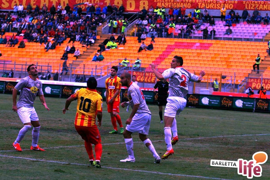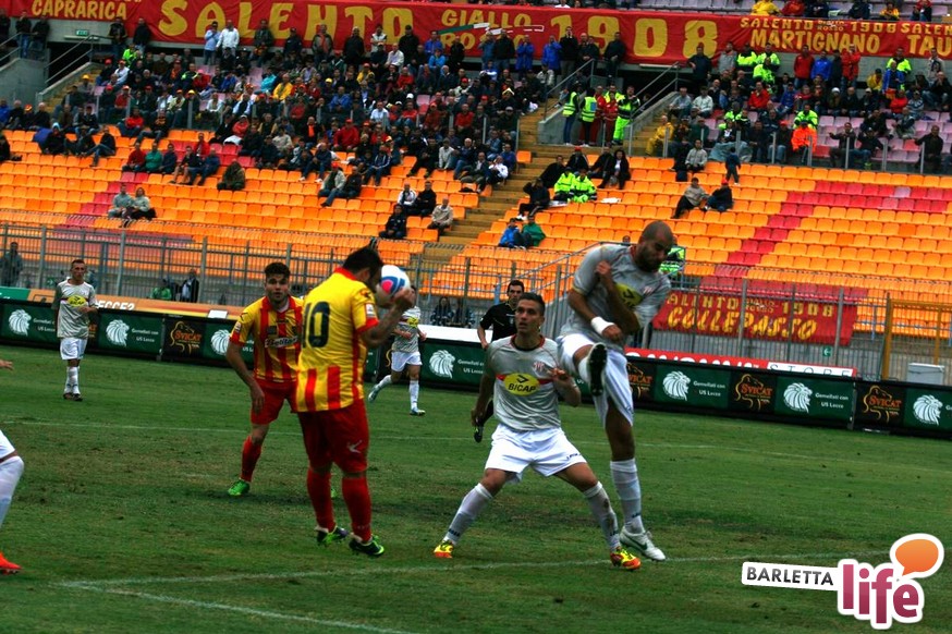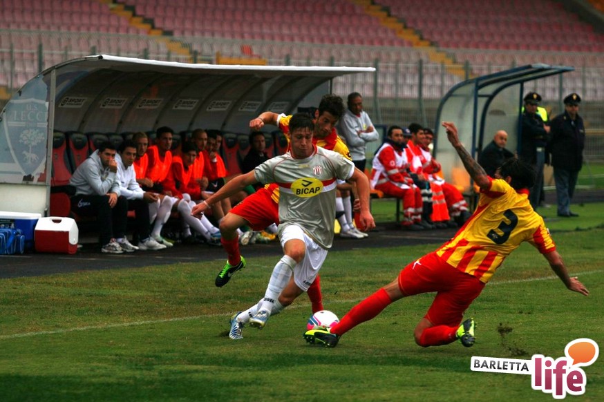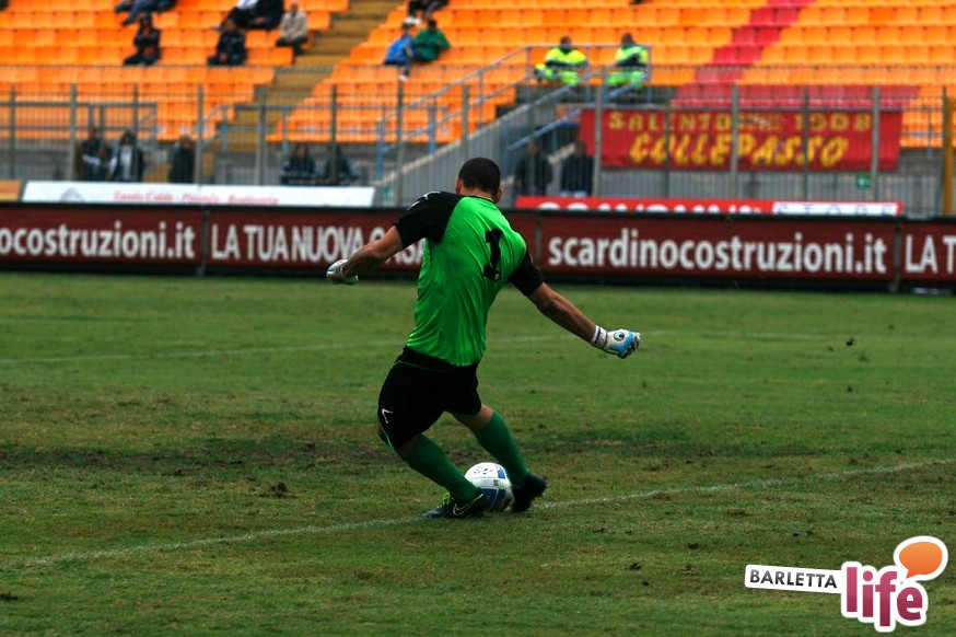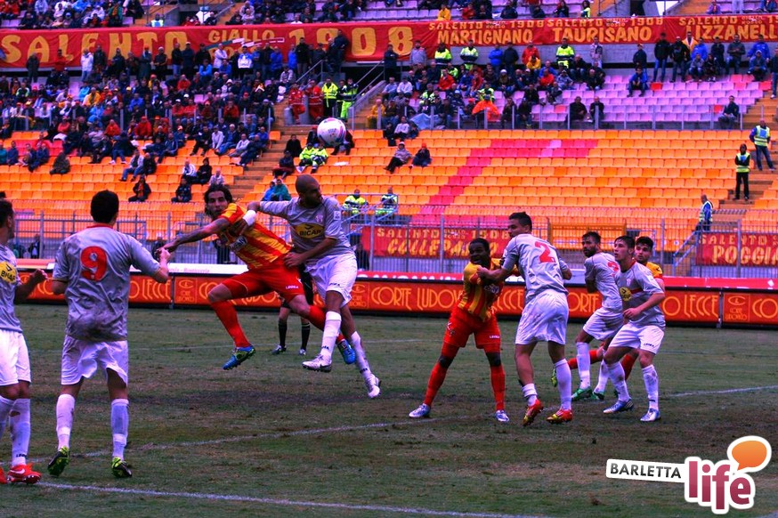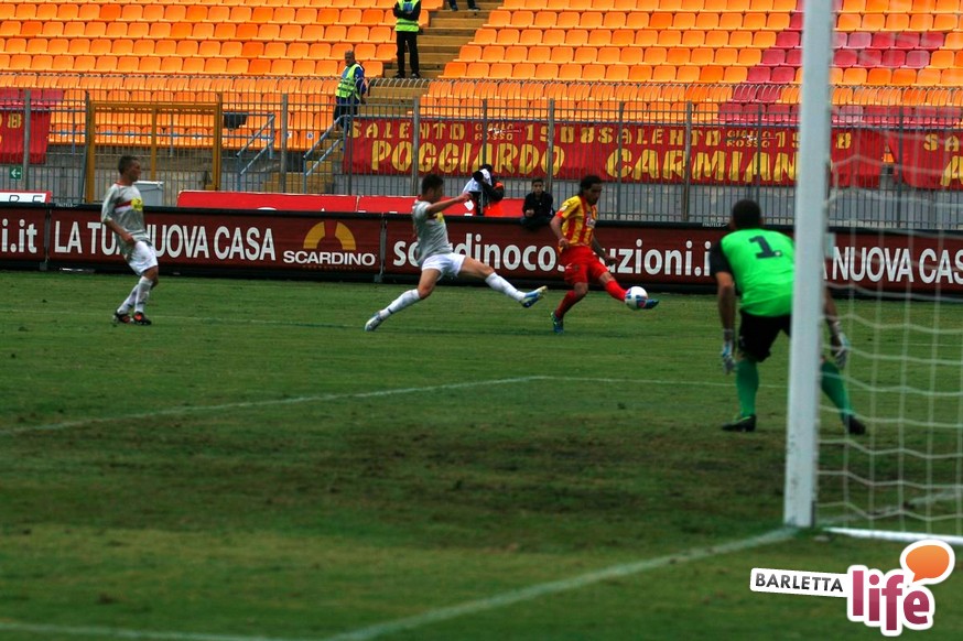 Da un lato il bicchiere mezzo pieno, con lo "stop" all'emorragia di sconfitte, perdurante da tre turni del torneo di Prima Divisione Lega Pro, girone B, una classifica che lentamente torna a muoversi e alla raccolta di palloni dalla rete alle spalle di Liverani; d'altra parte il bicchiere mezzo vuoto, con il record negativo di unica squadra del calcio professionistico a non essere ancora andata in rete nel proprio campionato ancora in "bacheca", la mancanza della prima vittoria nel torneo e la sensazione di essere tornati a casa con un punto solo per effetto di un catenaccio figlio di un calcio di altri tempi. Questa la dote con la quale il Barletta di Nevio Orlandi è rientrato dal "Via del Mare" di Lecce: un derby nato con tante aspettative, cresciuto attraverso la costante pressione salentina e i centri falliti da Miccoli & Co., animato dalle due tifoserie sugli spalti- cornici che meriterebbero sicuramente spettacoli migliori di quelli offertigli oggi dai rispettivi beniamini- e terminato tra timidi applausi dagli spalti. Riviviamo le emozioni di Lecce-Barletta 0-0 attraverso l'esclusiva fotogallery targata Barlettalife.it e composta dagli scatti realizzati a bordo campo da Enrico Gorgoglione: