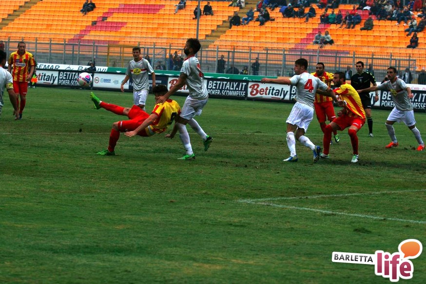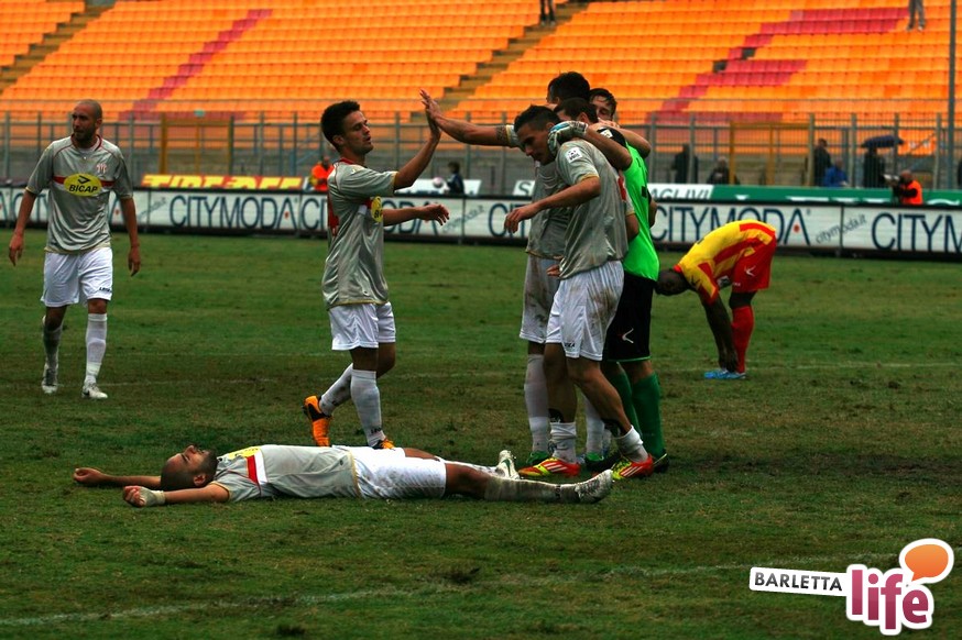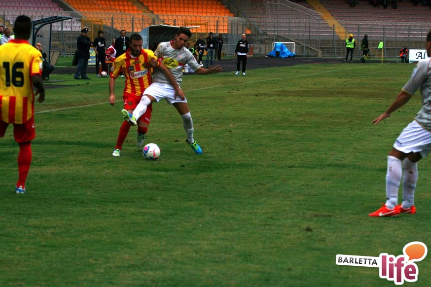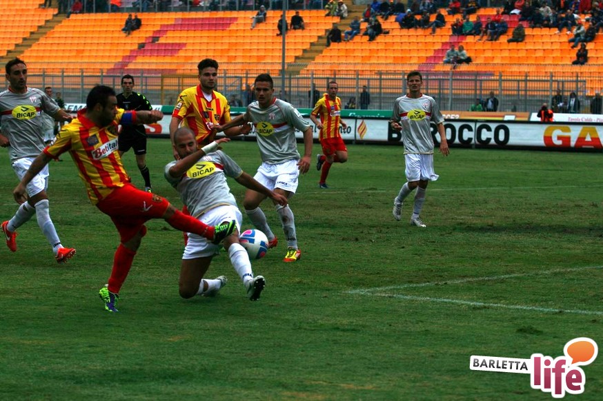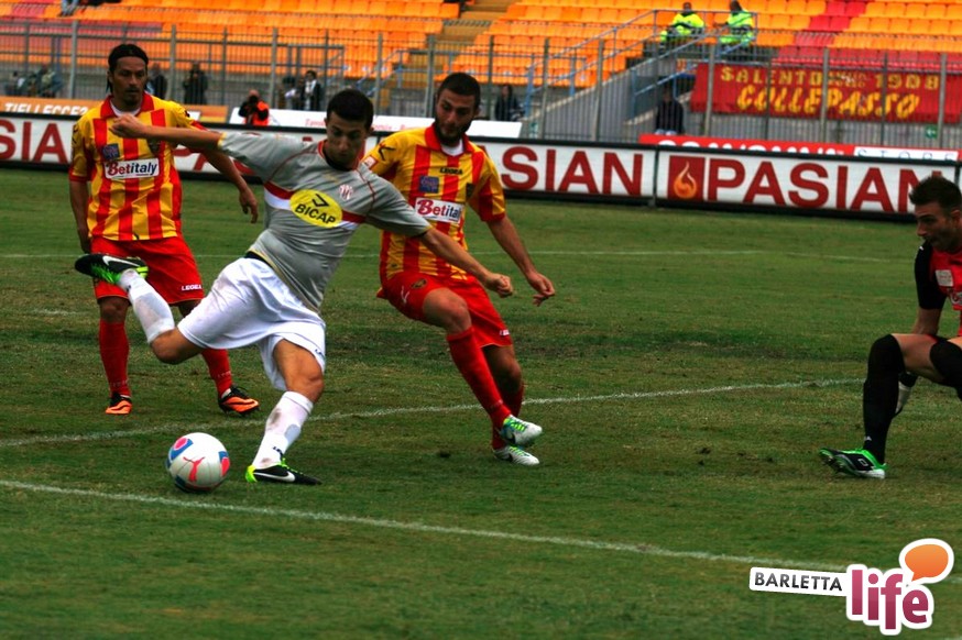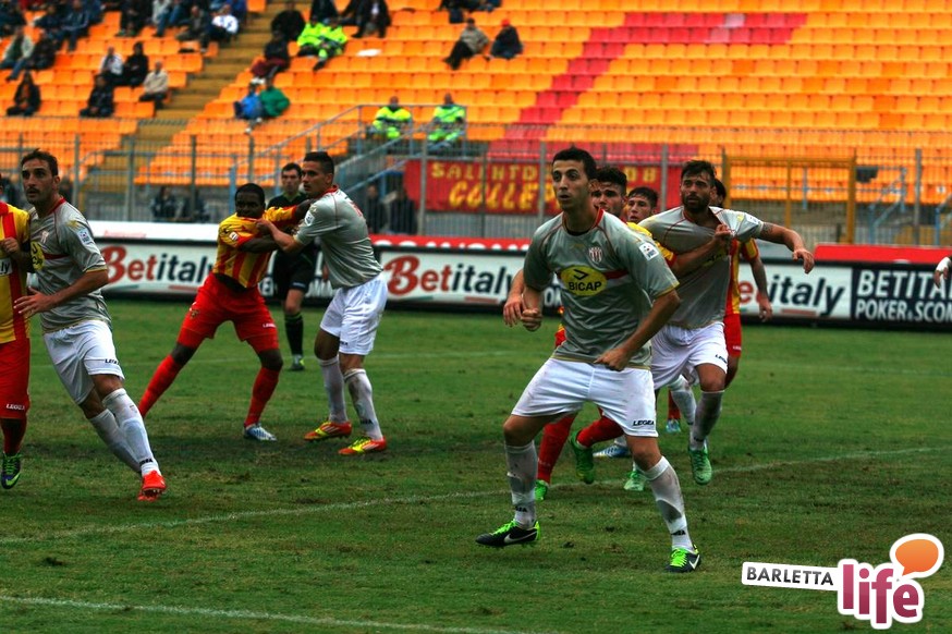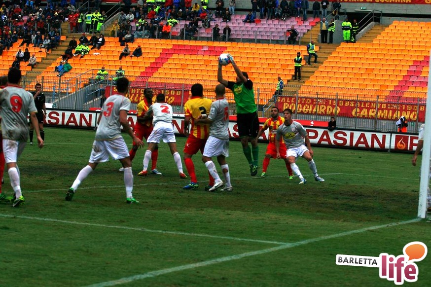 Da un lato il bicchiere mezzo pieno, con lo "stop" all'emorragia di sconfitte, perdurante da tre turni del torneo di Prima Divisione Lega Pro, girone B, una classifica che lentamente torna a muoversi e alla raccolta di palloni dalla rete alle spalle di Liverani; d'altra parte il bicchiere mezzo vuoto, con il record negativo di unica squadra del calcio professionistico a non essere ancora andata in rete nel proprio campionato ancora in "bacheca", la mancanza della prima vittoria nel torneo e la sensazione di essere tornati a casa con un punto solo per effetto di un catenaccio figlio di un calcio di altri tempi. Questa la dote con la quale il Barletta di Nevio Orlandi è rientrato dal "Via del Mare" di Lecce: un derby nato con tante aspettative, cresciuto attraverso la costante pressione salentina e i centri falliti da Miccoli & Co., animato dalle due tifoserie sugli spalti- cornici che meriterebbero sicuramente spettacoli migliori di quelli offertigli oggi dai rispettivi beniamini- e terminato tra timidi applausi dagli spalti. Riviviamo le emozioni di Lecce-Barletta 0-0 attraverso l'esclusiva fotogallery targata Barlettalife.it e composta dagli scatti realizzati a bordo campo da Enrico Gorgoglione: