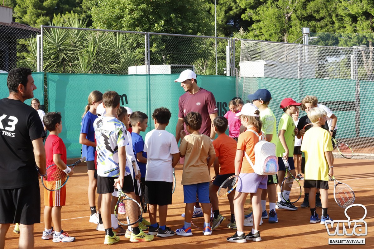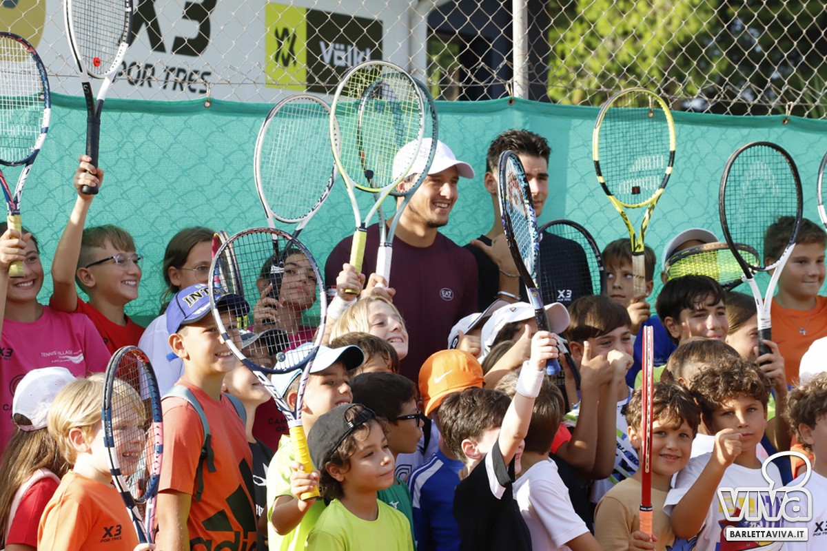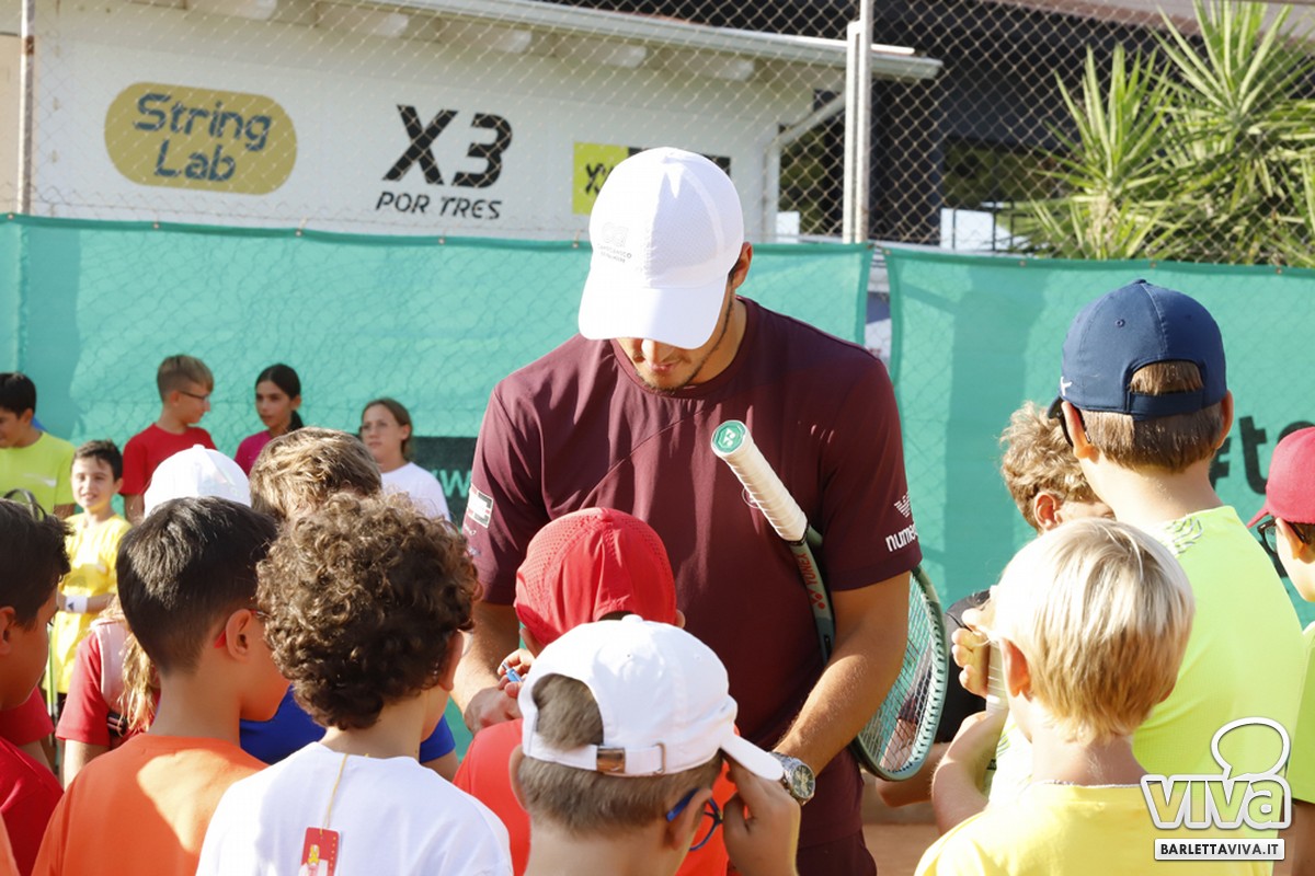 Il Tennis Village Pietro Mennea ha inaugurato quest'oggi la sua nuova stagione con tanti tra allievi, giovani e giovanissimi nuovi praticanti, e un ospite davvero di eccezione. Ad accogliere i tanti bambini e ragazzi iscritti ai corsi del Tennis Village nell'Open Day della stagione 2025/26 era infatti presente niente meno che Luciano Darderi, da stasera numero 30 del Ranking ATP, nonché fresco vincitore degli AON Open 125 di Genova (dove ha sconfitto in finale (6-1 6-3) il biscegliese Andrea Pellegrino), terzo titolo della stagione 2025 dopo i successi ai tornei ATP di Marrakech e di Bastad.
