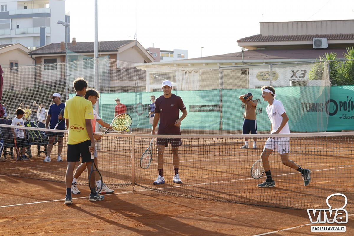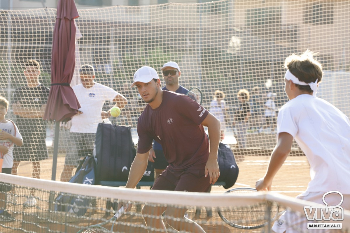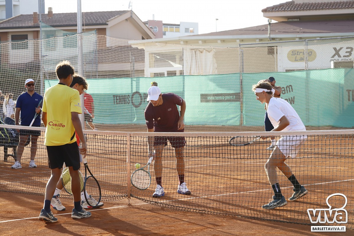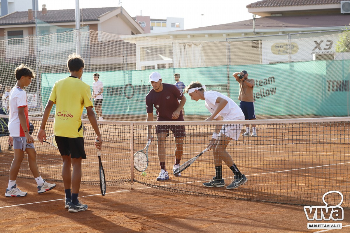 Dopo essersi dedicato alla classica firma di autografi, accompagnata naturalmente da tanti, tra selfie e foto ricordo, Darderi ha dapprima palleggiato con praticamente tutti gli allievi under del Tennis Village, e giovani promesse di altri circoli, per poi disputare un insolito e divertente match di doppio con alcuni giocatori un po' più "esperti".