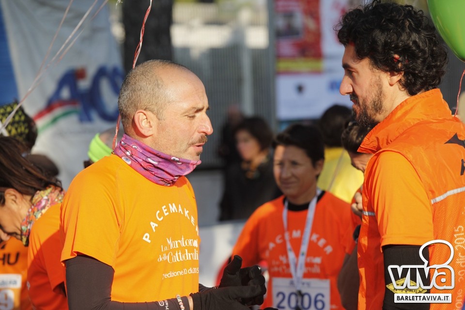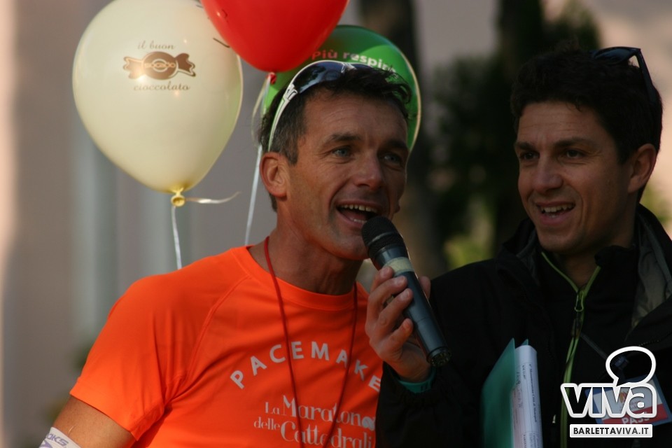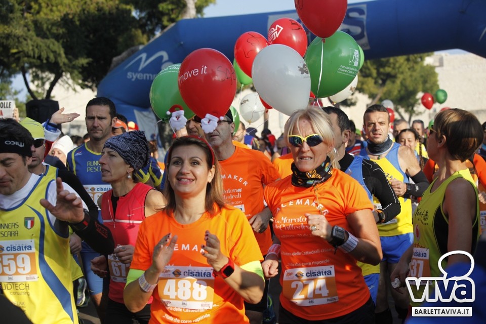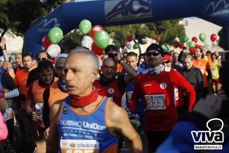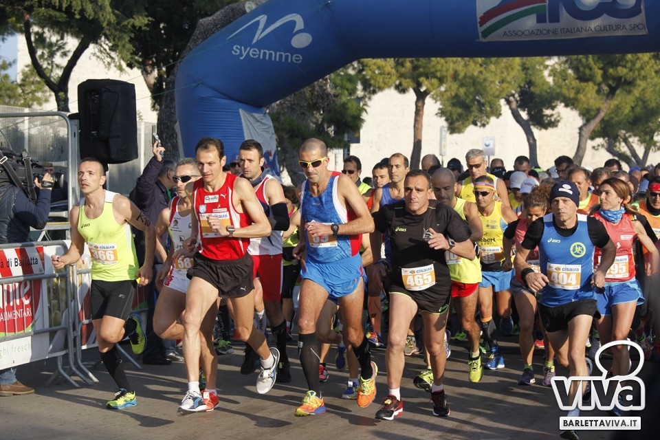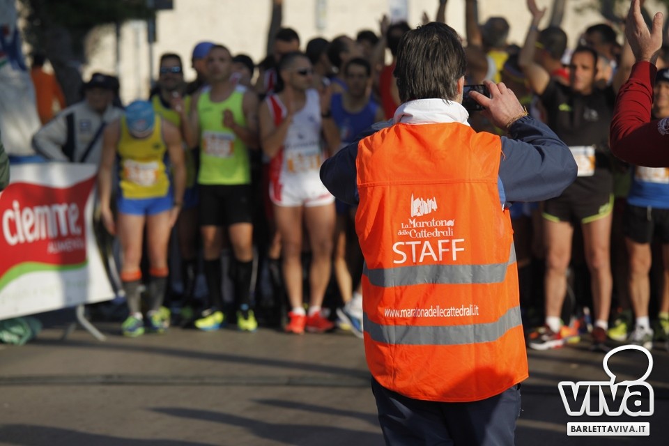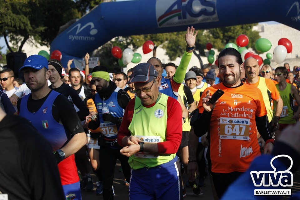 Esattamente alle 9:30, al triplice sparo dello starter, sono partiti carichi di adrenalina in Piazza Cavour - a pochi metri dal Castello - gli oltre mille atleti che stanno partecipando alla Maratona delle Cattedrali, il suggestivo evento podistico che ripercorre le città di Barletta, Trani, Bisceglie, Molfetta, fino a Giovinazzo, tappa di arrivo, all'ombra delle più belle cattedrali pugliesi.