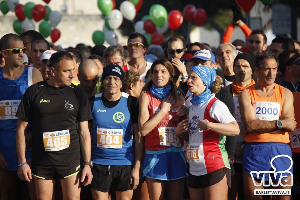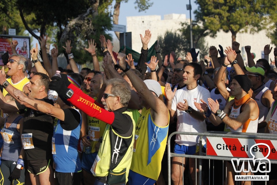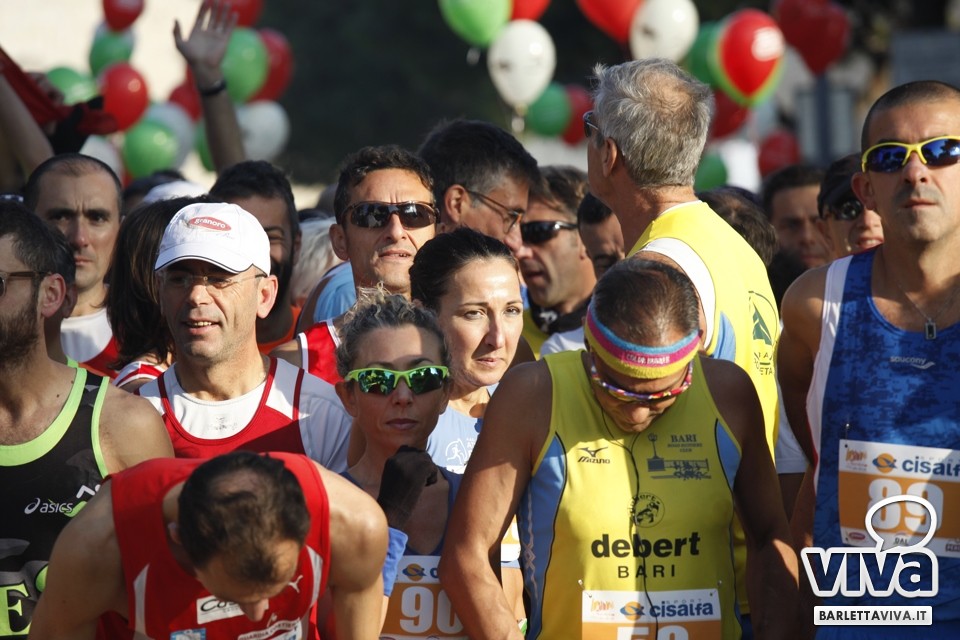 Professionisti e semplici appassionati, giovani e non, la fiumana di atleti che questa mattina si è riversata a Barletta per la partenza ha riempito di colore le strade del centro storico: oltre il 40% dei partecipanti proviene da fuori Regione. Un successo dello sport ma anche una festa dell'Italia. Organizzata da Puglia Marathon ASD, la manifestazione - che prevede anche la mezza maratona con la partenza alle ore 11:00 da Bisceglie - è la prima maratona del Sud Italia per numero di arrivi. Quella del 2015 è la seconda edizione della manifestazione sportiva.