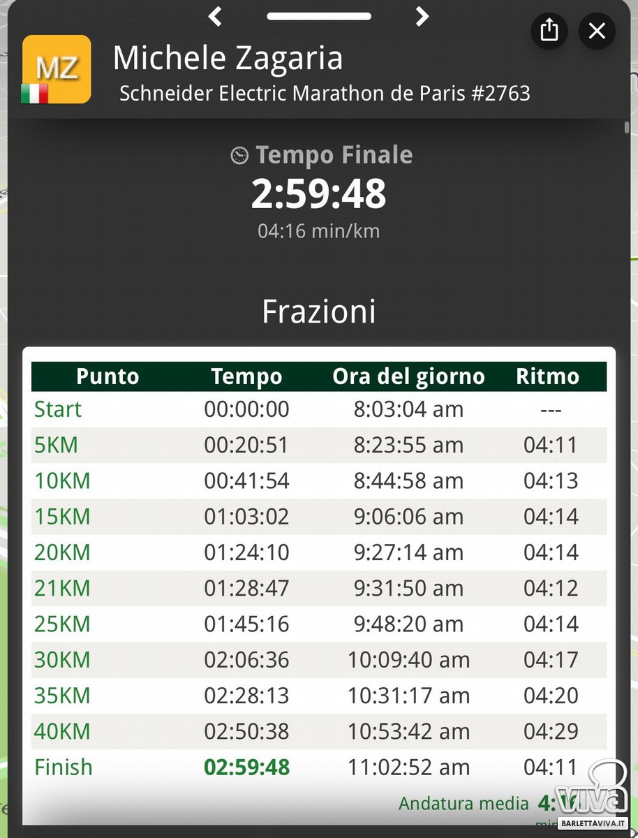 Maratona di Parigi, impresa per il barlettano Michele Zagaria: 2:59:48 e muro delle tre ore abbattuto
