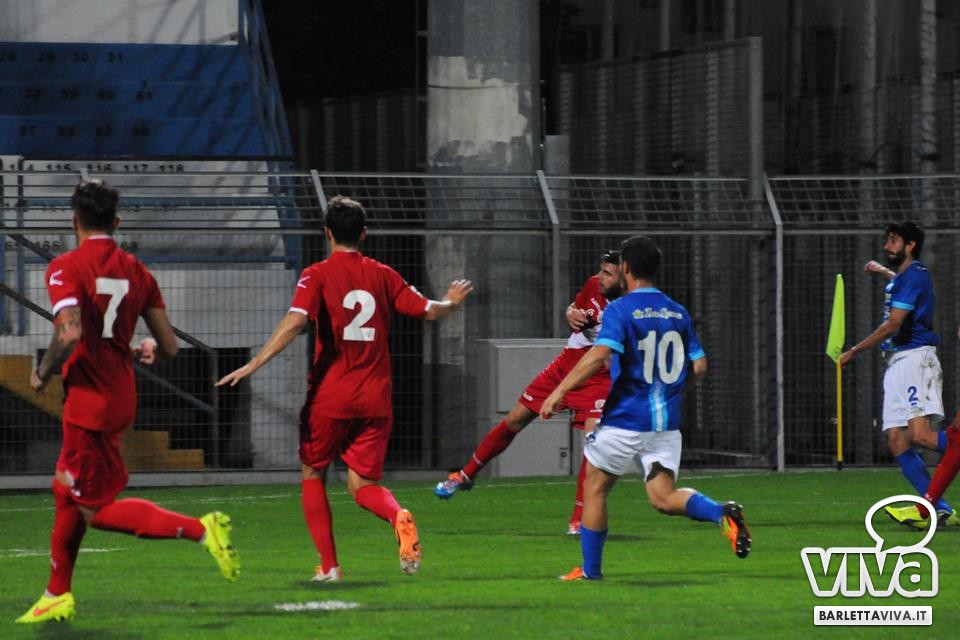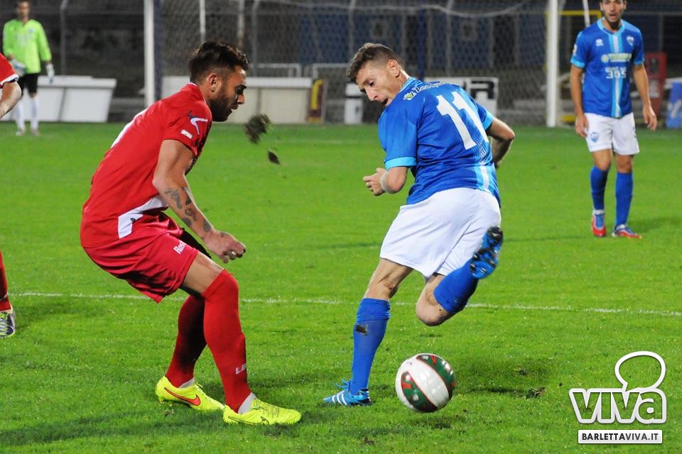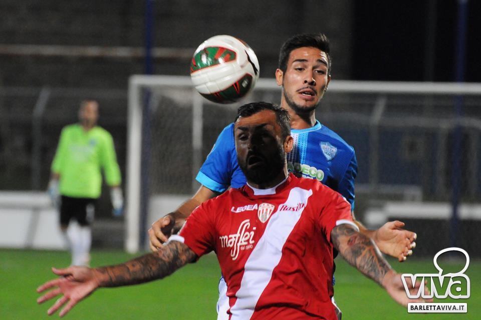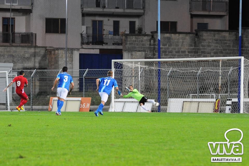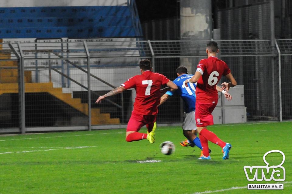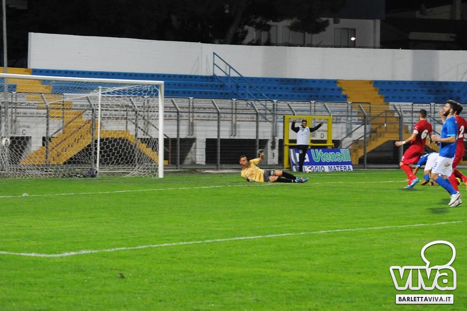 Vantaggio, raddoppio sfiorato, uno-due a mò di uppercut a ribaltare il punteggio e una ripresa spesa a inseguire, senza frutti, l'avversario. Così è maturata ieri sera a Matera per un Barletta imbottito di riserve la seconda sconfitta consecutiva dopo il ko di Aprilia contro la Lupa Roma, con annessa eliminazione al Primo Turno della Fase Finale dalla Coppa Italia Lega Pro. Dopo lo 0-1 siglato all'alba del match da Biancolino su calcio di rigore, i biancorossi sono stati puniti a cavallo della mezz'ora del primo tempo da Gallozzi prima e Pagliarini poi, centri che hanno regalato ai biancoazzurri di casa l'accesso al Secondo Turno. Per il Barletta si passa dal "XXI settembre-Franco Salerno" al prossimo incontro: in un calendario denso di impegni, è tempo di pensare a sabato sera, quando al "Puttilli" arriverà il Benevento, nella sfida in programma per il turno numero 8 del campionato di Lega Pro, girone C. Riviviamo Matera-Barletta 2-1 attraverso la photogallery concessa gentilmente dal portale TuttoMatera.it:
