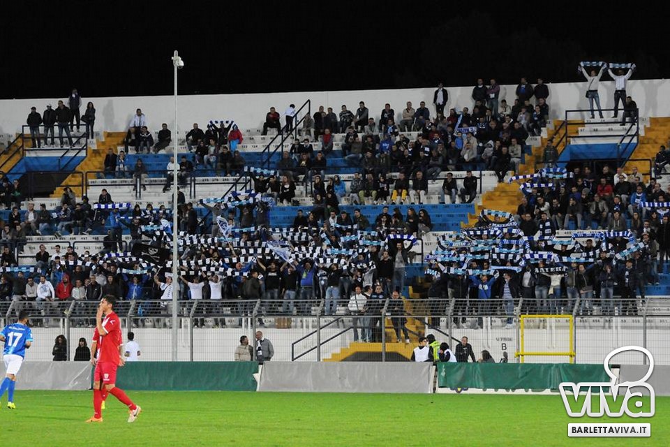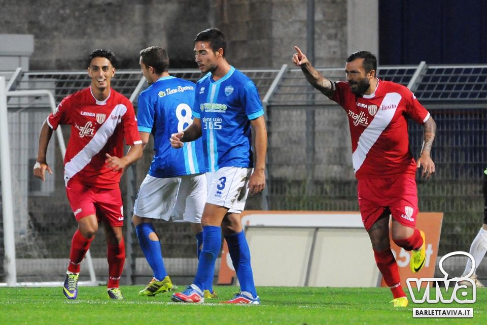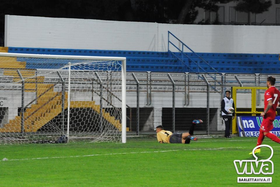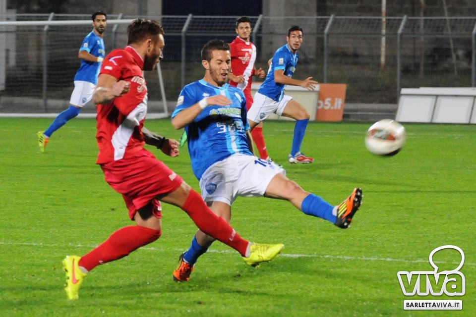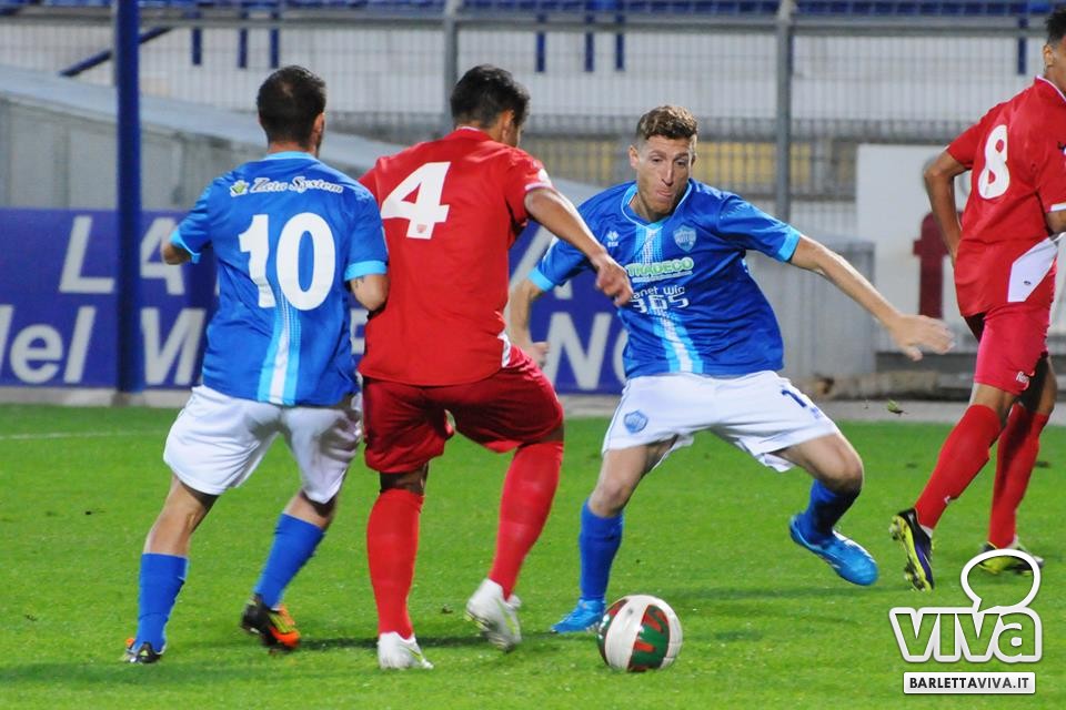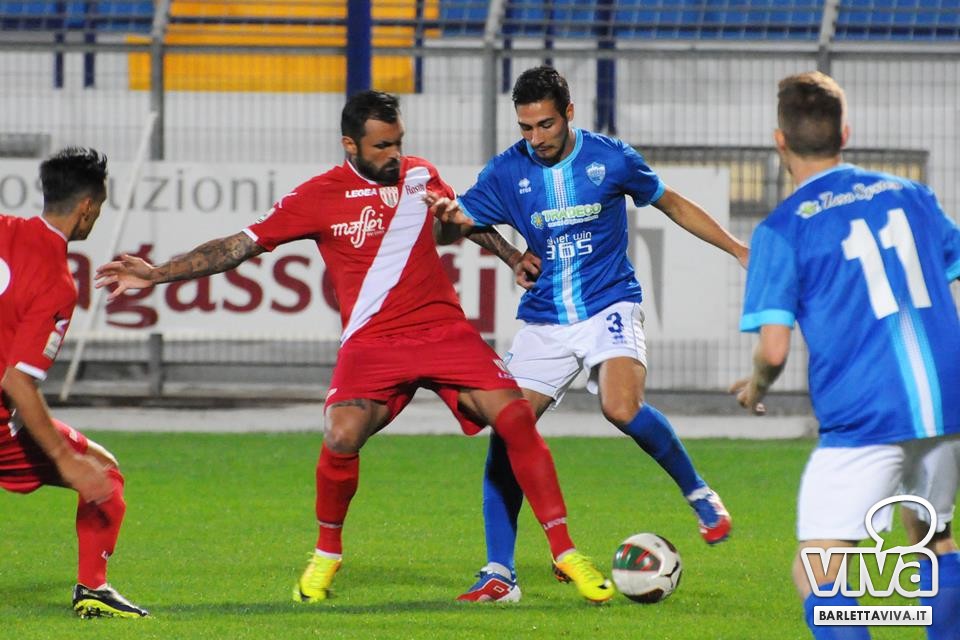 Vantaggio, raddoppio sfiorato, uno-due a mò di uppercut a ribaltare il punteggio e una ripresa spesa a inseguire, senza frutti, l'avversario. Così è maturata ieri sera a Matera per un Barletta imbottito di riserve la seconda sconfitta consecutiva dopo il ko di Aprilia contro la Lupa Roma, con annessa eliminazione al Primo Turno della Fase Finale dalla Coppa Italia Lega Pro. Dopo lo 0-1 siglato all'alba del match da Biancolino su calcio di rigore, i biancorossi sono stati puniti a cavallo della mezz'ora del primo tempo da Gallozzi prima e Pagliarini poi, centri che hanno regalato ai biancoazzurri di casa l'accesso al Secondo Turno. Per il Barletta si passa dal "XXI settembre-Franco Salerno" al prossimo incontro: in un calendario denso di impegni, è tempo di pensare a sabato sera, quando al "Puttilli" arriverà il Benevento, nella sfida in programma per il turno numero 8 del campionato di Lega Pro, girone C. Riviviamo Matera-Barletta 2-1 attraverso la photogallery concessa gentilmente dal portale TuttoMatera.it: