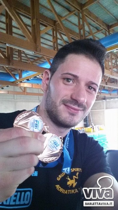 Terzo posto, medaglia di bronzo e primato personale: si è concluso con questo lungimirante bottino il weekend di Fedele Cafagna. Il nuotatore barlettano classe 1983, tesserato per l'Asd Adriatika Nuoto di Ruvo, ha preso parte domenica mattina alla terza delle quattro prove previste dal Circuito Supermaster-Campionati Regionali pugliesi in quel di Modugno. Cafagna ha terminato la sua prova sui 100 metri misti nella categoria "Master 30 maschi" nel tempo di 1'12" 60 (accredito 778.65), risultando il terzo classificato nella graduatoria regonale: prima posizione per Cristian Lezzi della Muovi Lecce Ssd (1'11"53,, con accredito di 790,30) e argento per Daniele Crudo, anch'egli tesserato per il sodalizio salentino e abile nell'archiviare la sua prova con il tempo finale di 1'11"62 (789,30).