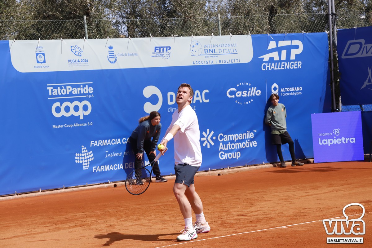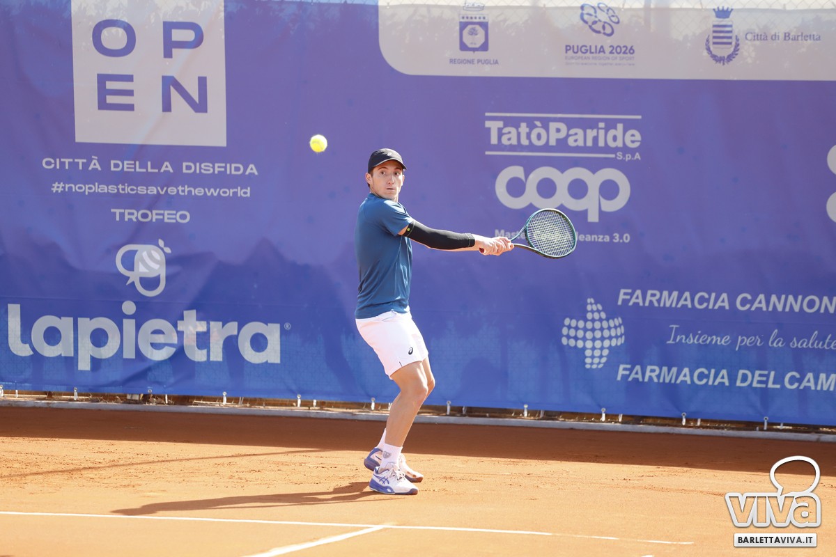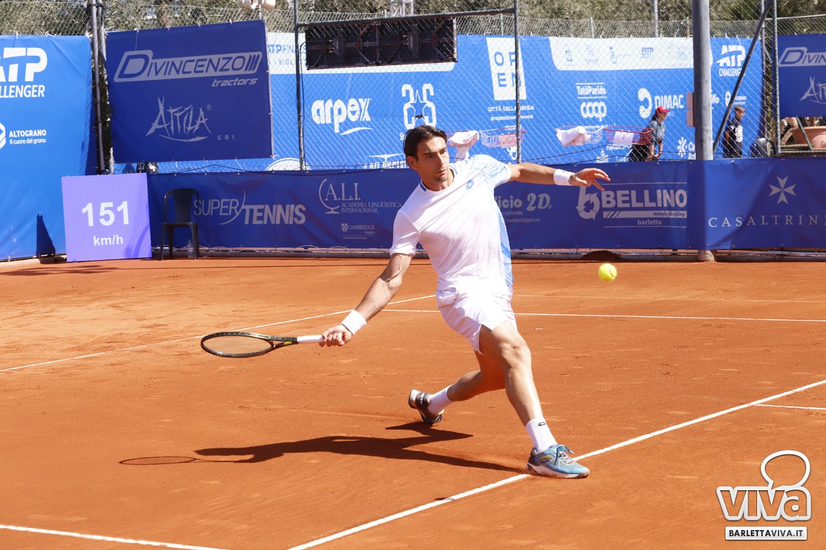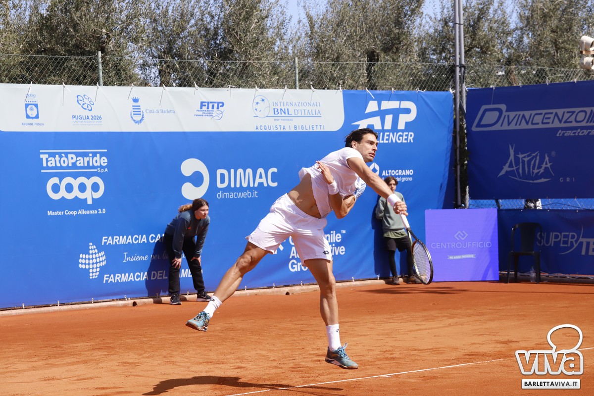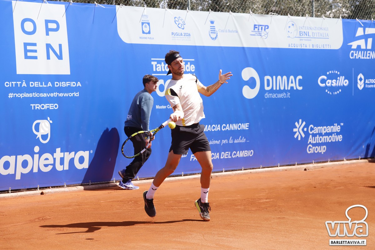 Finalmente il sole sul Circolo Tennis "Hugo Simmen" di Barletta, e soprattutto sul Challenger "Città della Disfida" Trofeo Lapietra 2026, che ha completato nella giornata di oggi gli incontri del secondo turno del singolare, e decretato le due coppie finaliste nel doppio. Ma andiamo con ordine, a partire dai nostri cinque protagonisti che erano impegnati negli ottavi di finale, di cui il primo a scendere in campo sul "centrale" è stato Marco Cecchinato.