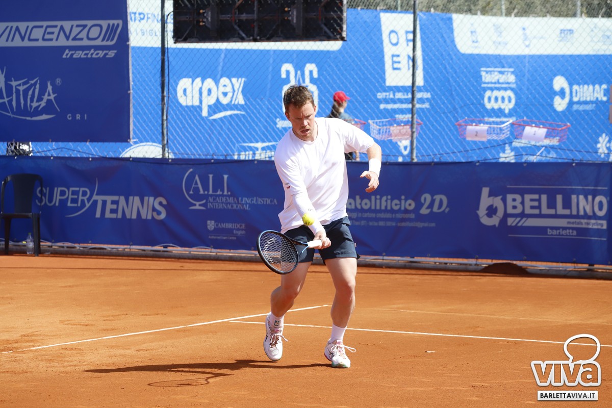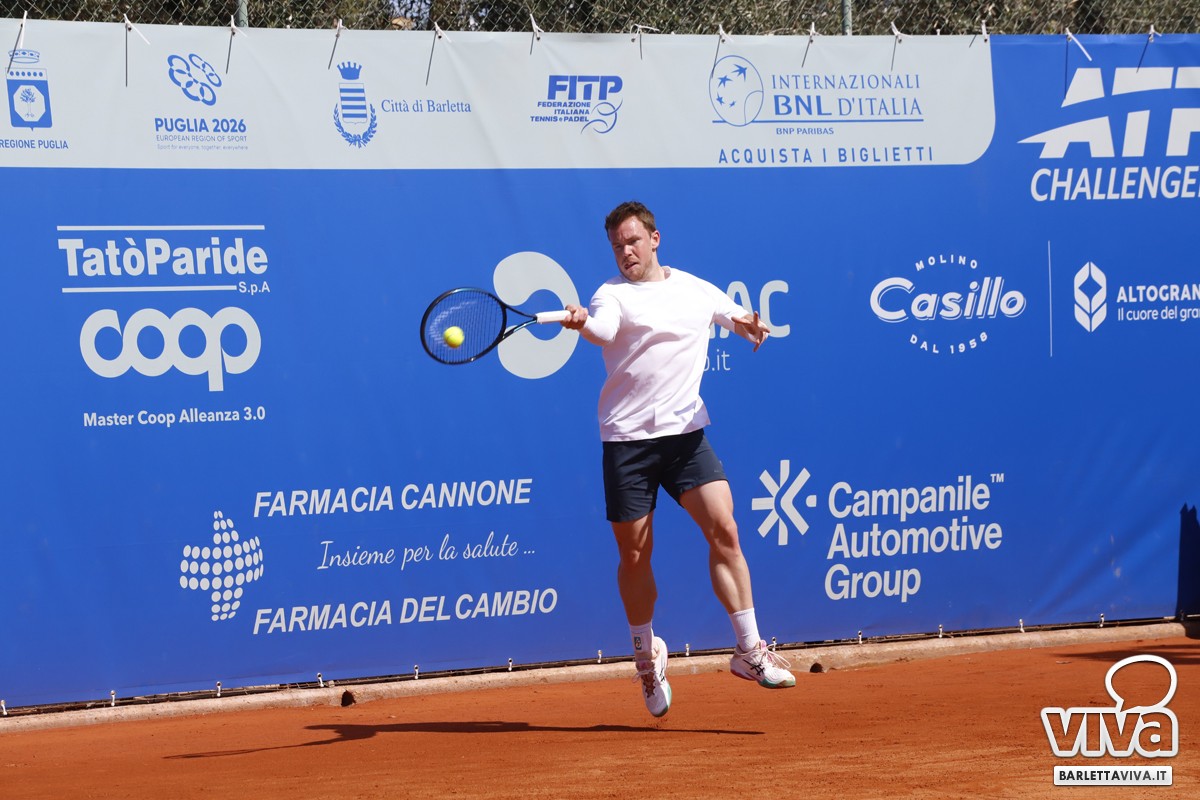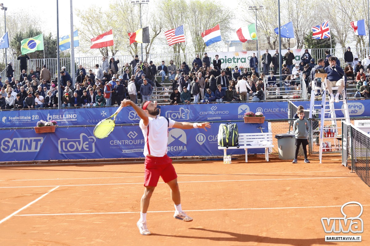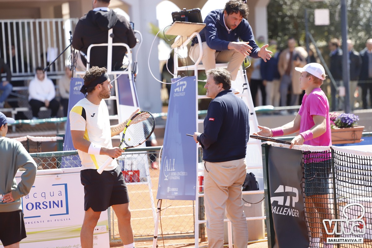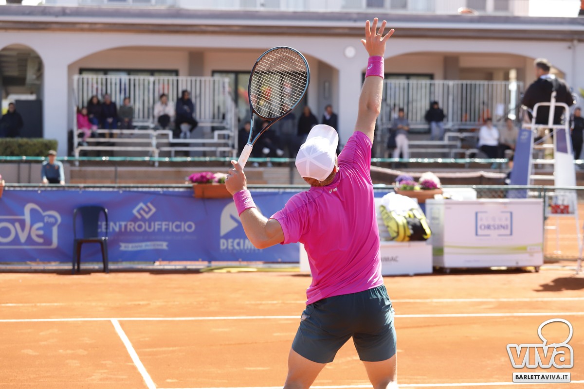 Finalmente il sole sul Circolo Tennis "Hugo Simmen" di Barletta, e soprattutto sul Challenger "Città della Disfida" Trofeo Lapietra 2026, che ha completato nella giornata di oggi gli incontri del secondo turno del singolare, e decretato le due coppie finaliste nel doppio. Ma andiamo con ordine, a partire dai nostri cinque protagonisti che erano impegnati negli ottavi di finale, di cui il primo a scendere in campo sul "centrale" è stato Marco Cecchinato.