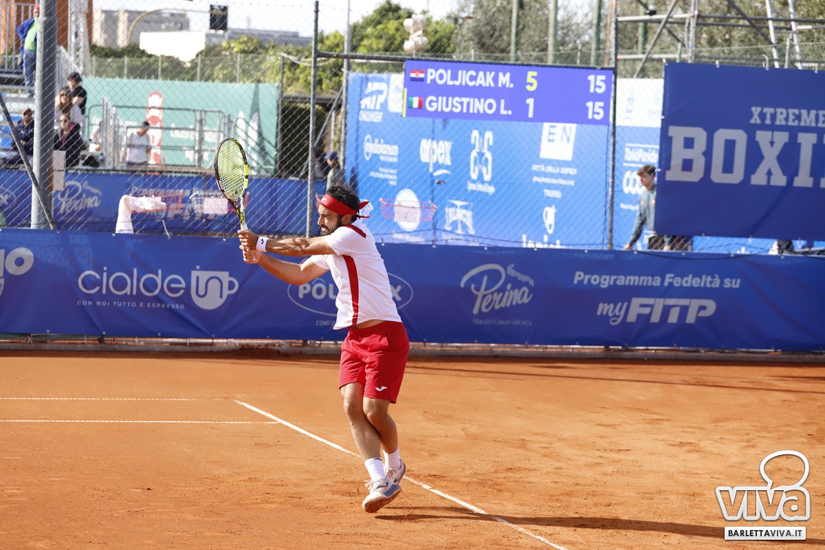 Eliminato poche ore dopo anche Lorenzo Giustino, che ha ceduto in tre set (2-6 6-3 2-6) al croato Mili Poljicak, giocando molto sotto tono il primo set, dove ha consentito al croato di portarsi abbastanza agevolmente sul 4-0, prima del tardivo risveglio degli ultimi quattro giochi.