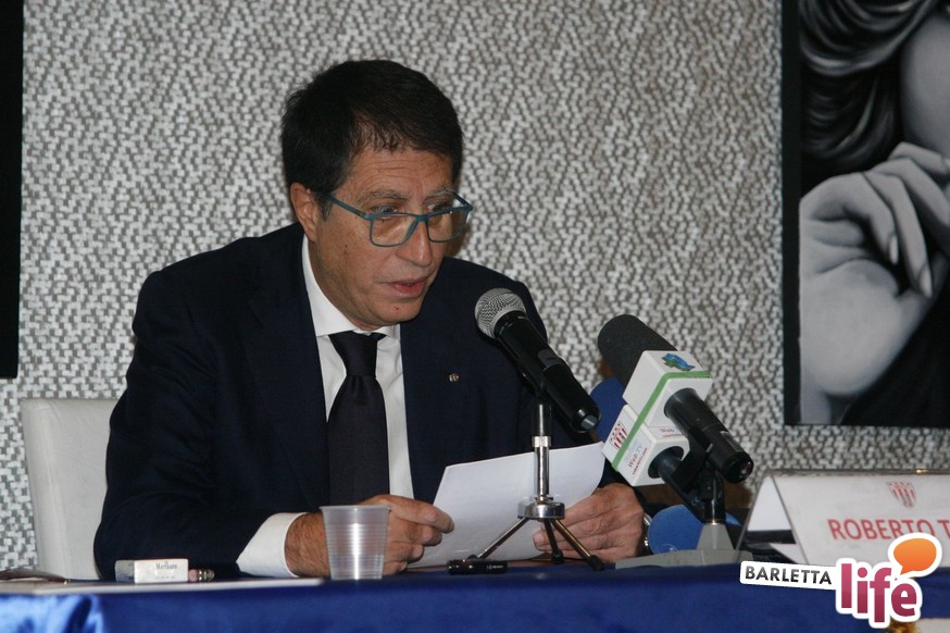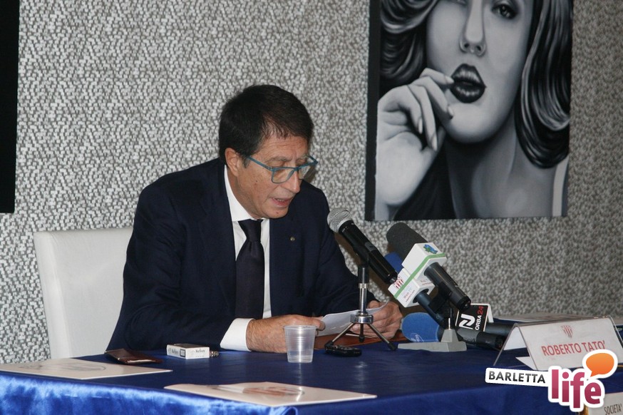 Tatò: "Il Barletta Calcio è il mio amore, ma l'amore è eterno finchè dura. In questi tre anni ho commesso errori, spesso per buona fede, magari per indulgenza e amore verso il Barletta: mi risulta intollerabile che mi siano date colpe che non ho commesso che mi siano imputate scelte, fatte sempre per costruire una società solida e raggiungere traguardi sportivi. Ma il calcio non è una macchina perfetta: sfugge a logiche imprenditoriali che hanno sempre caratterizzato il mio lavoro. Si può parlare di fortuna e sfortuna, infortuni, errori sotto porta, e con tutto questo ci siamo confrontati: eppure veniamo da campionati da brividi, con emozioni forti. Due anni fa la corsa-playoff interrotta per un solo, maledetto punto, inflitto da una ingiusta penalizzazione".