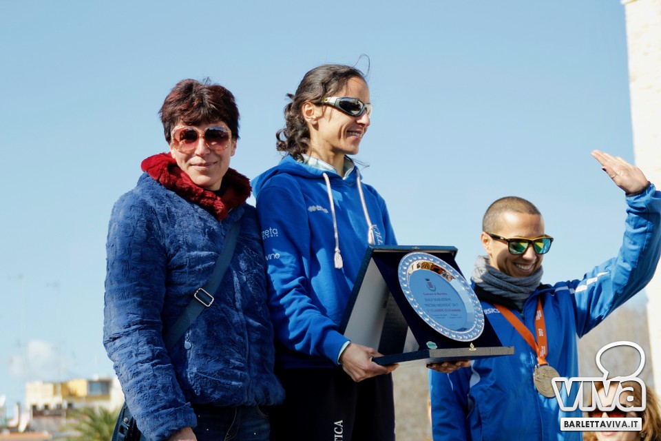 Intervenuti durante la premiazione degli atleti vincitori Enzo Cascella, presidente dell' A.s.d. "Barletta Sportiva", l'assessore allo sport Patrizia Mele e le due cugine di Pietro Mennea presenti durante la manifestazione sportiva.