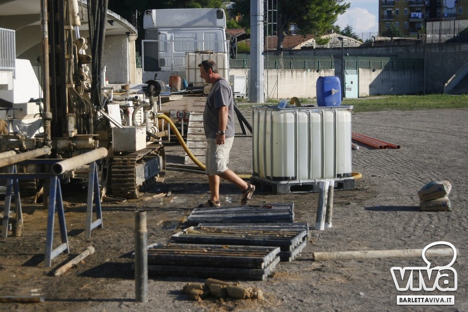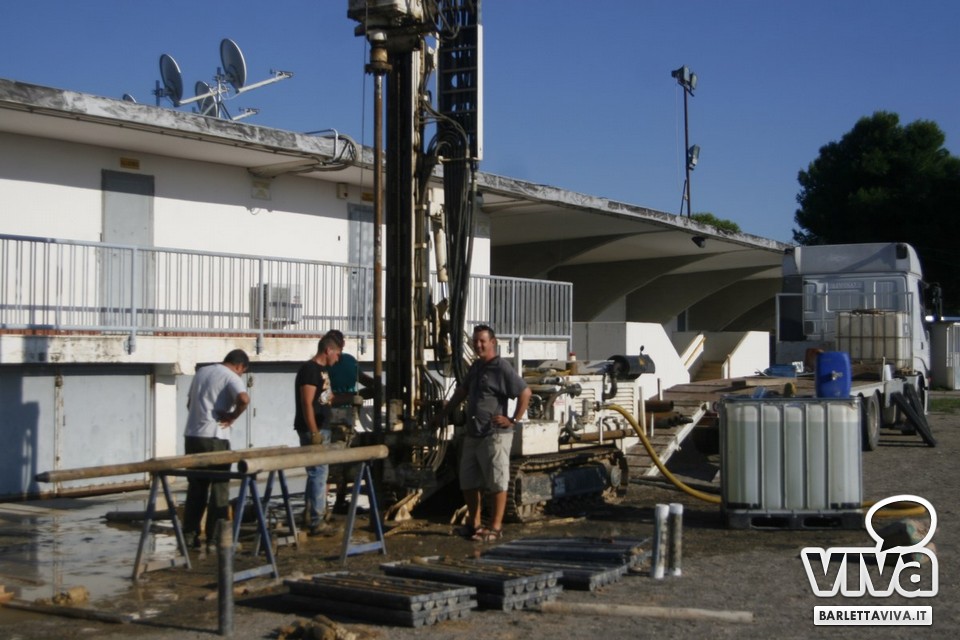 Nella giornata di ieri sono poi approdati in città i tecnici della Geosevi srl, ditta incaricata dalla Cms srl di effettuare i sondaggi geognostici del caso (in foto), atti che permettono di analizzare il suolo in profondità per la valutazione delle sue caratteristiche geologiche e geotecniche: in agenda tre giorni di lavoro sul perimetro del rettangolo di gioco e delle tribune, con perforazioni fino ai 30 metri, per definire la composizione del terreno sottostante, fatto perlopiù di sabbia e argilla, uniti alla misurazione della sismicità locale. I lavori termineranno domani pomeriggio e il loro esito sarà consegnato a fine mese alla ditta campana, producendo dati utili per il progetto di cantierizzazione del "Cosimo Puttilli".
