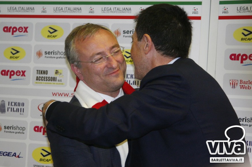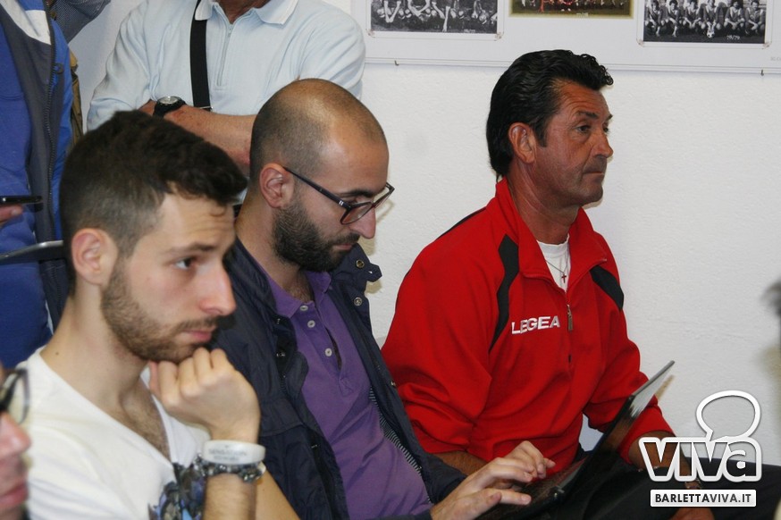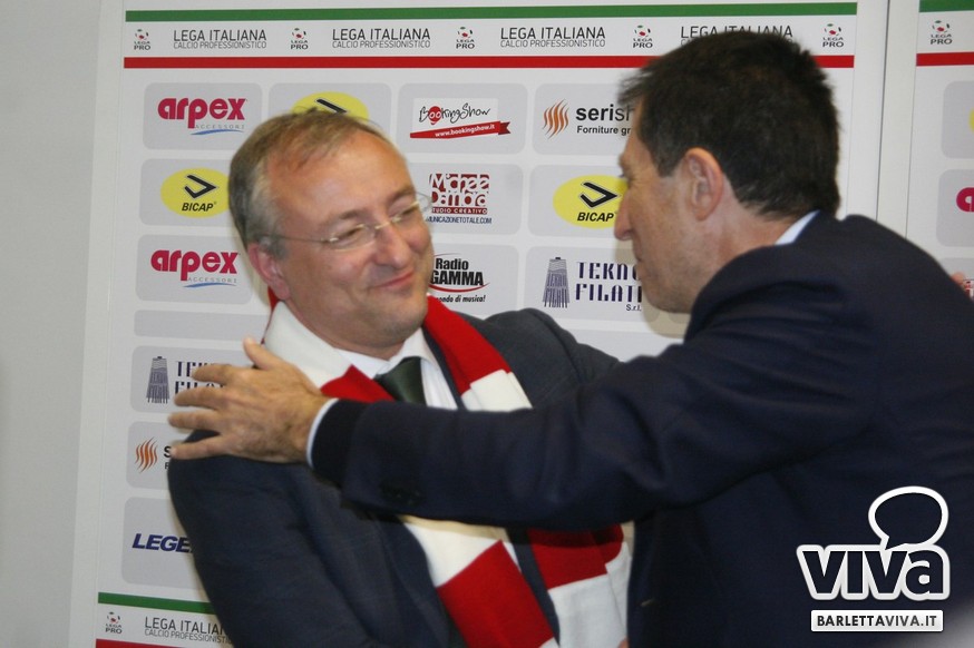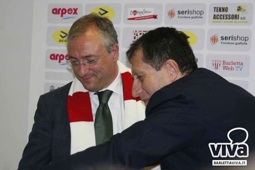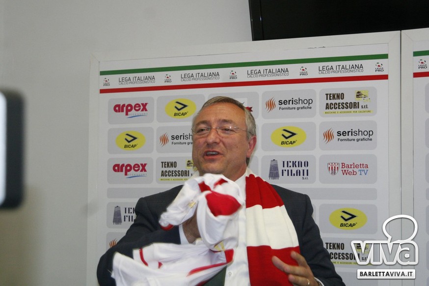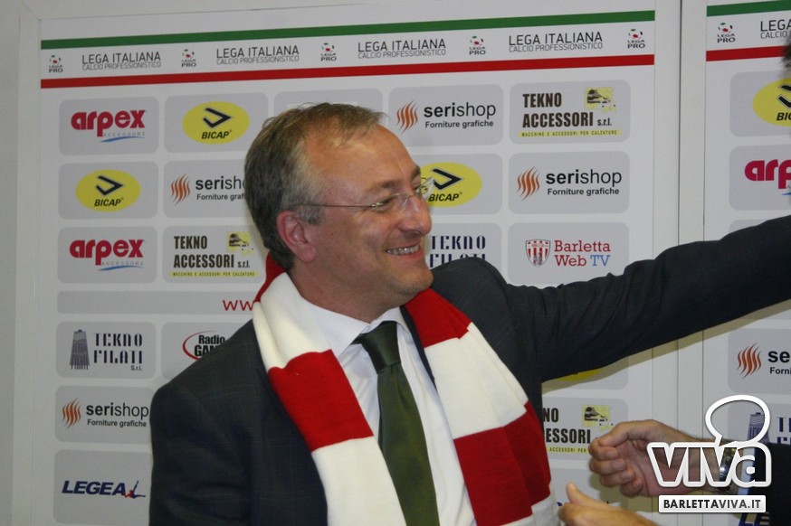 «Per me essere qua è un sogno che si avvera, ma forse anche più di un sogno. Vengo da un campetto di bambini, poi sono salito in seconda categoria, eccellenza e serie D. Ho provato il grande salto con il Bogliasco ma non sono riuscito, ed allora la voglia di fare calcio mi ha portato qui. Perchè ho fatto 1000 km mi chiederete? Perchè di tutte le società che ci sono in vendita, l'unica a condizioni da sogno, con debiti zero e messa sul piatto d'argento è il Barletta. In più, l'incontro con Roberto è stato a pelle, è come se ci fossimo sempre conosciuti. Di lì in poco tempo è come se ci fossimo sempre conosciuti. La voglia e l'entusiasmo che vedo fa venire davvero tanta voglia. Ora manteniamo la calma, teniamo la categoria e creiamo entusiasmo. Andiamo allo stadio per divertirci e vedere una squadra che gioca un bel calcio, da lì si comincia».