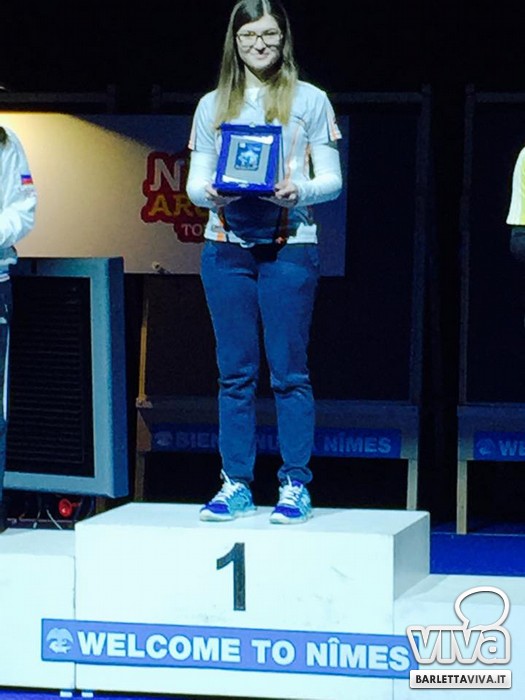 Una vittoria conquistata grazie all'applicazione e alla cultura del lavoro, trasmessa dall'allenatore Vincenzo Lionetti, con il quale Loredana era stata premiata anche in occasione della recente "Festa dello Sport" a Bisceglie. «Sono emozionatissima, tornare su quel campo mi ha fatto ricordare la finale dello scorso anno-il commento entusiasta di Loredana ai microfoni di BarlettaViva-Ho dato tutto e sono contentissima. Ora ci godiamo questa gioia». Già nel 2014 Nimes era stata tappa dolce per la Spera, che aveva portato a casa con la spedizione targata-Italia il titolo nell'Arco Olimpico Junior a squadre, superando in finale l'Ucraina nel trio completato da Sara Ret e Tatiana Andreoli.