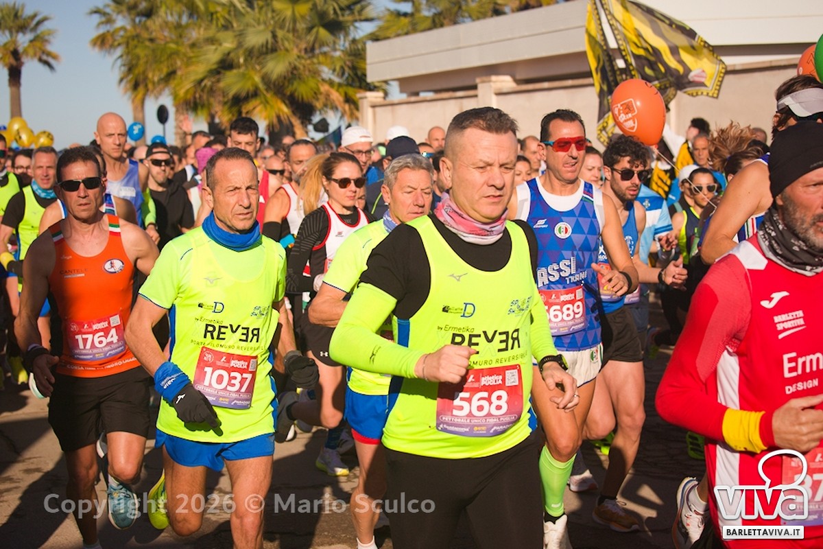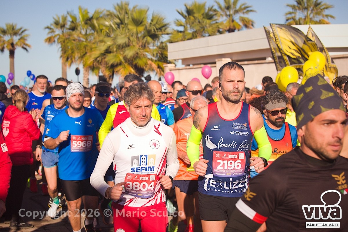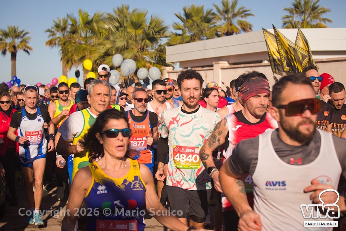 Una azzeccata giornata di sole ha incorniciato oggi la XVI edizione della Volkswagen Barletta Marathon e Half Marathon 2026, manifestazione nazionale organizzata da Barletta Sportiva, che ha richiamato oltre 2.000 partecipanti provenienti da ogni angolo d'Italia.