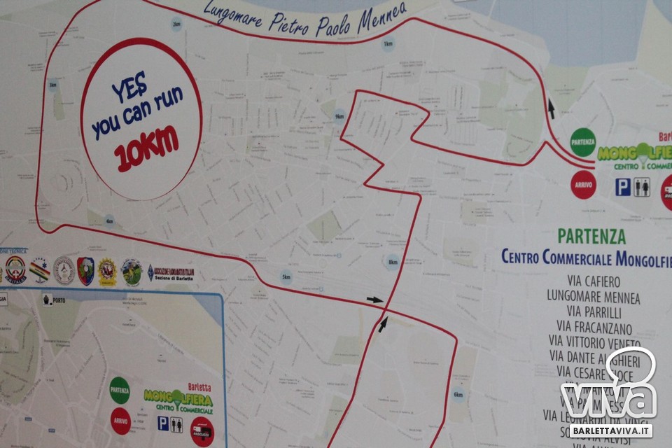 Il percorso della prova podistica avrà il suo "start" in via Cafiero e si dipanerà per il lungomare Mennea, il ponte di via Parrilli, fino al quartiere "Patalini", per poi tornare in centro lungo il sottovia Alvisi, via D'Aragona, Corso Garibaldi, Corso Vittorio Emanuele, Corso Cavour, con arrivo in via Vespucci. Un ennesimo attestato di stima per l'atletica leggera a Barletta, come sottolineato da Isidoro Alvisi: «Barletta resta tappa pregiata nell'atletica regionale e nazionale, e il fatto che la Fidal investa tempo e sforzi per affiancare manifestazioni di questa portata ne è la testimonianza: vedo grande presenza di sponsor e stampa, segno di quanto il territorio sia sempre più reattivo davanti a tali eventi». Collaborazione è la parola d'ordine per Antonio Divincenzo: «L'evento di domenica sarà frutto della sinergia tra Barletta Sportiva, mondo dell'atletica e mondo delle istituzioni: per questo va ringraziata la Polizia Municipale, che domenica garantirà la massima sicurezza lungo il percorso e la miglior viabilità per le strade cittadine. Non resta che allenarci a dovere» ha chiosato l'assessore.