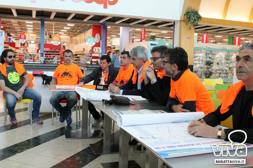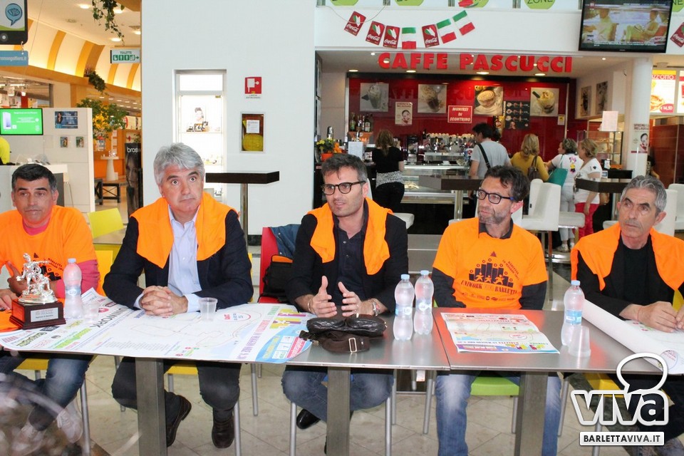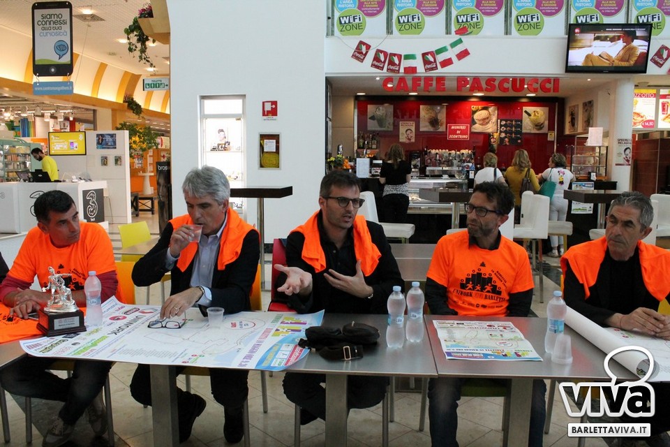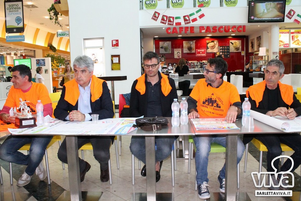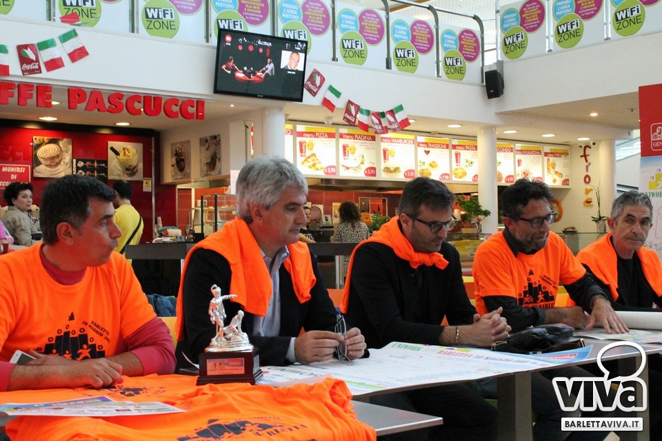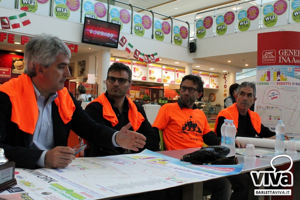 Si torna a correre all'ombra di Eraclio a dieci di distanza dalla Mezza Maratona del 15 febbraio. L'appuntamento è per domenica 10 maggio, con la "Uniwork ViviBarletta 2015", gara podistica competitiva sulla distanza dei km 10 circa: l'evento, organizzato come ogni anno dall'Asd Barletta Sportiva con il patrocinio del Comune di Barletta e della Provincia BAT, il riconoscimento del C.O.N.I. Bat, della F.I.D.A.L. Puglia e della U.I.S.P., è stato presentato questa mattina nella cornice del centro commerciale "Mongolfiera" di Barletta, quest'anno inconsueta sede di partenza e arrivo della corsa, che nella scorsa edizione ha fatto registrare la presenza di oltre 2500 partecipanti. A far da padrone di casa il responsabile del centro commerciale, Michele Lattanzio, affiancato dal presidente della Barletta Sportiva, Enzo Cascella, alla presenza dell'assessore allo Sport del Comune di Barletta, Antonio Divincenzo, e del Delegato Coni-Bat Isidoro Alvisi.